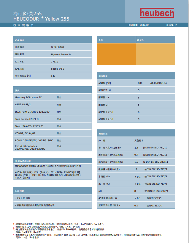 产品型号HEUCODUR Yellow 255