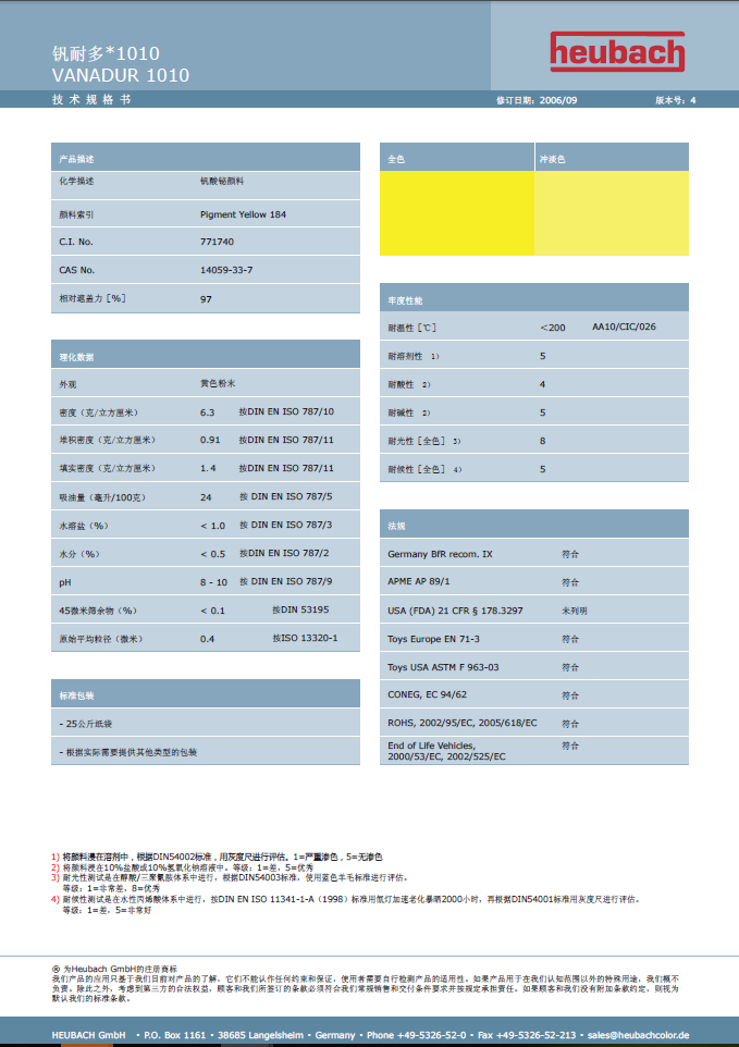 随着消费品和工业品的质量和性能不断改进,他们对外观和牢度性能需求也越来越高。这类产品如涂料,塑料,建筑材料和陶器产品对着色牢度性能高的颜料需求持续增长。HEUCODUR®颜料正符合这类需求。