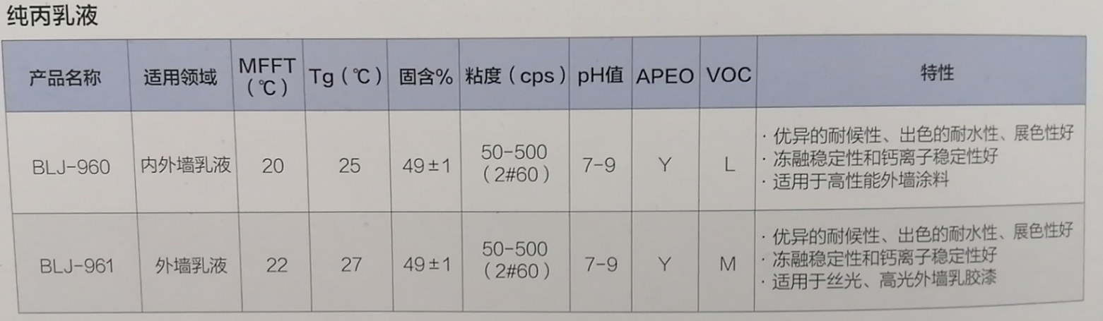 保立佳纯丙乳液BLJ-960 产品资料下载列表: