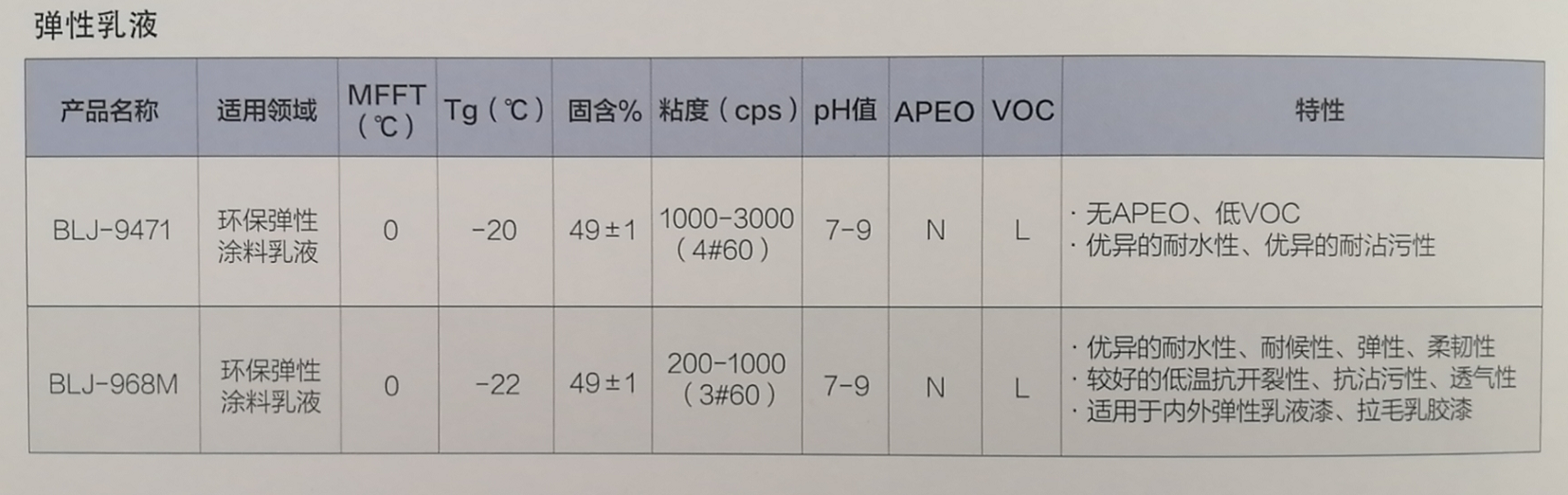 保立佳弹性乳液BLJ-968M 产品资料下载列表: