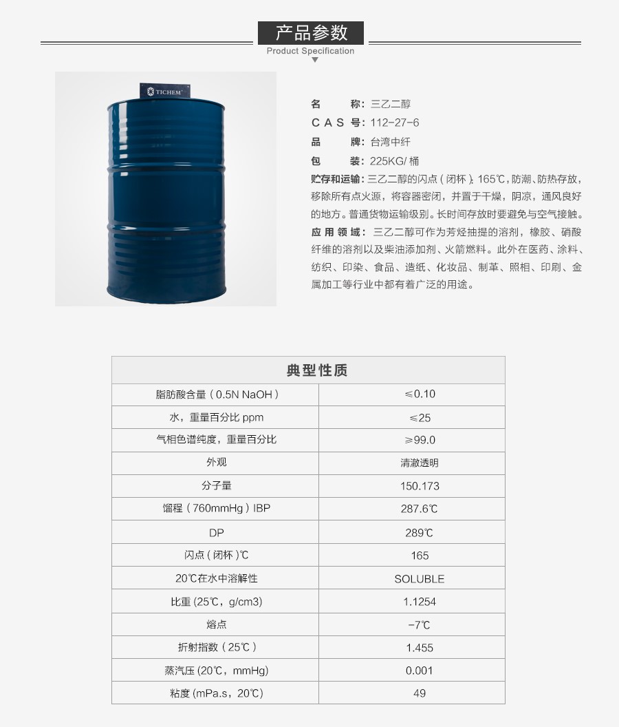 商品名称:台湾中纤 三乙二醇
