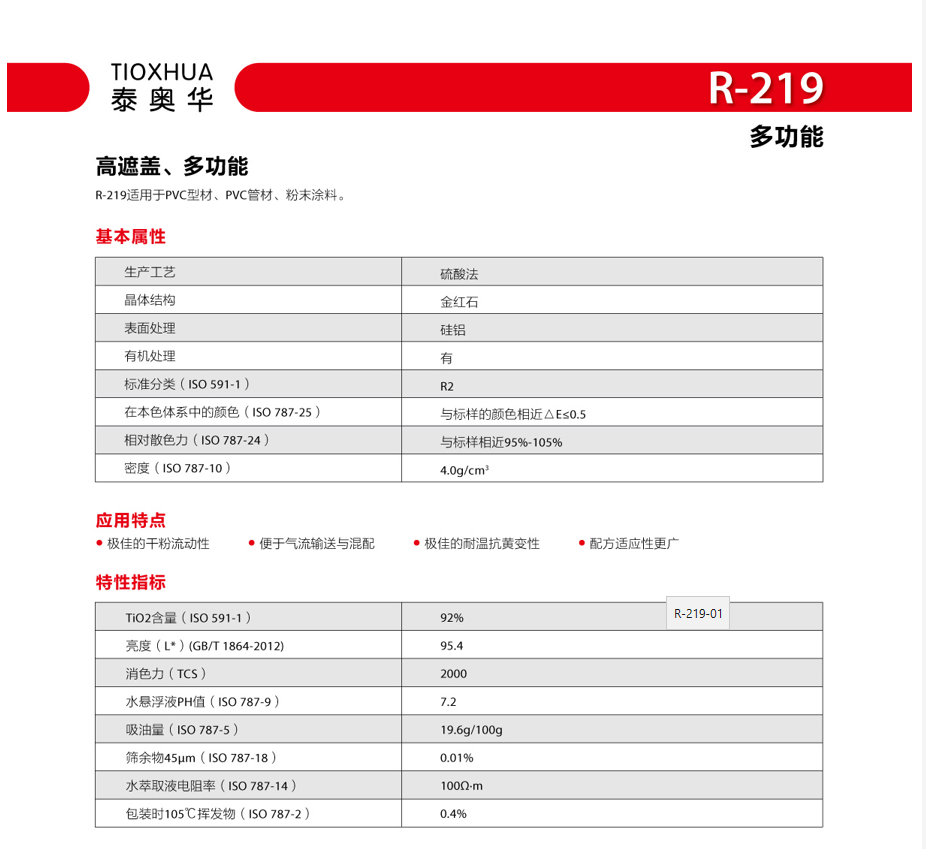 R-219适用于PVC型材.PVC管材.粉末涂料。