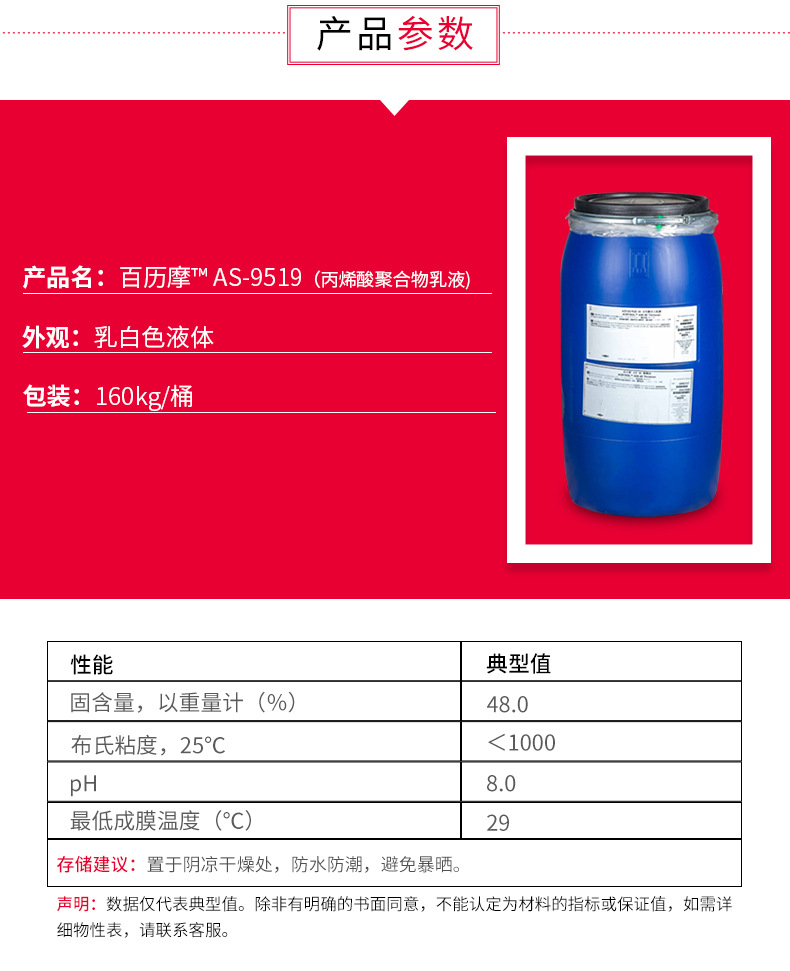 商品名称:陶氏Dow 百历摩 AS-9519 丙烯酸乳液