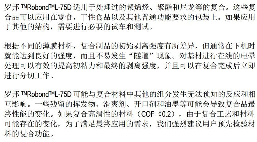 2.陶氏罗邦Robond 75D软包装粘合剂典型性能