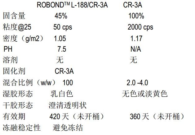 1.陶氏罗邦Robond L-188/CR-3A水性粘合剂典型数据指标: