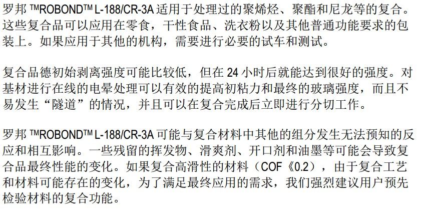 2.陶氏罗邦Robond L-168/CR-3A软包装粘合剂典型性能