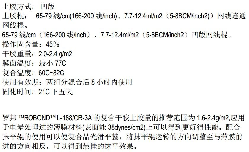 3.陶氏罗邦Robond L-168/CR-3A软包装粘合剂建议操作条件