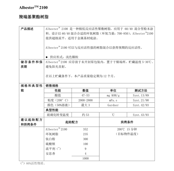 商品名称:昕特玛Synthomer粉末涂料树脂Albester SilkyMatt 2100