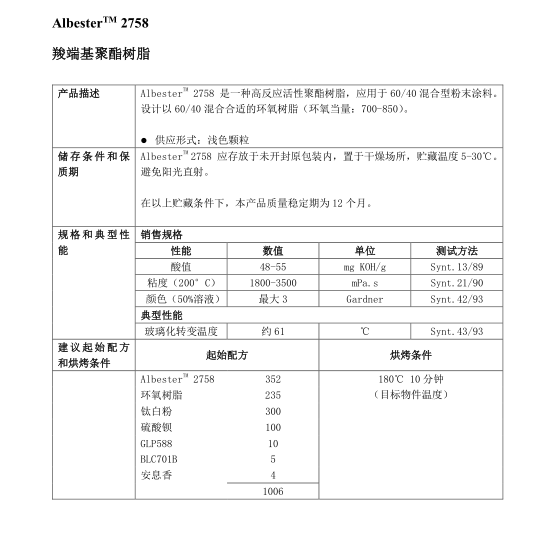 当前位置: 首页 > 树脂 > 昕特玛Synthomer粉末涂料树脂Albester SilkyMatt 2758