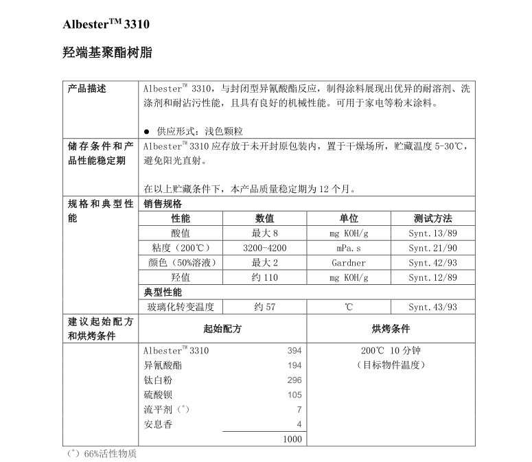 商品名称:昕特玛Synthomer粉末涂料树脂Albester SilkyMatt 3310