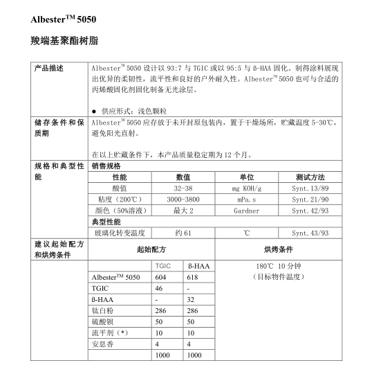 商品名称:昕特玛Synthomer粉末涂料树脂Albester SilkyMatt 5050