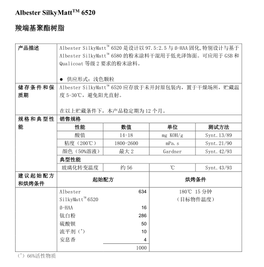昕特玛Synthomer粉末涂料树脂Albester SilkyMatt 6520