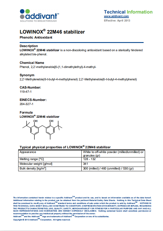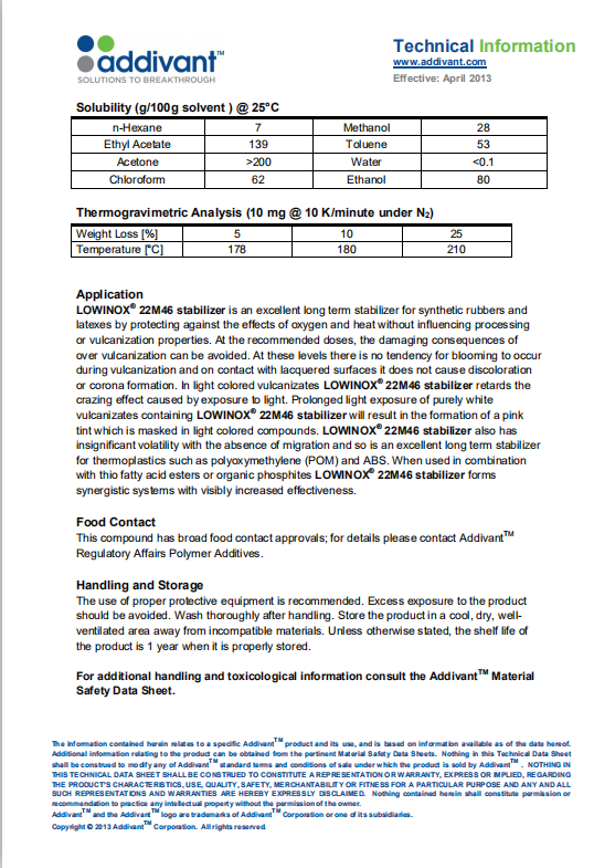 亚帝凡特(科聚亚)Addivant 抗氧剂22m46 产品资料下载列表: