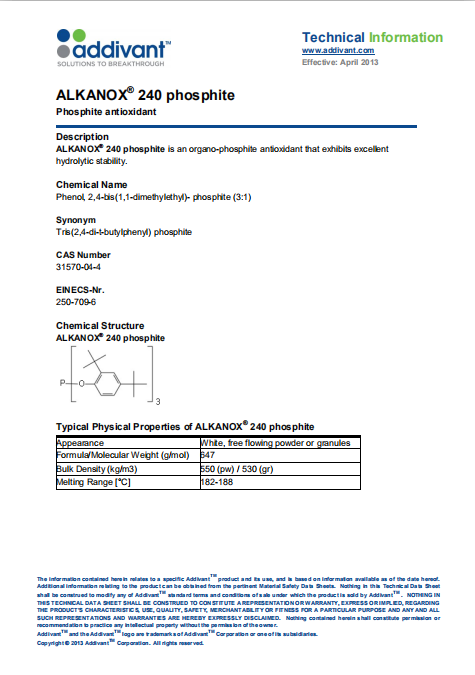 亚帝凡特(科聚亚)Addivant 抗氧剂240 产品资料下载列表: