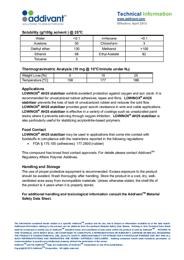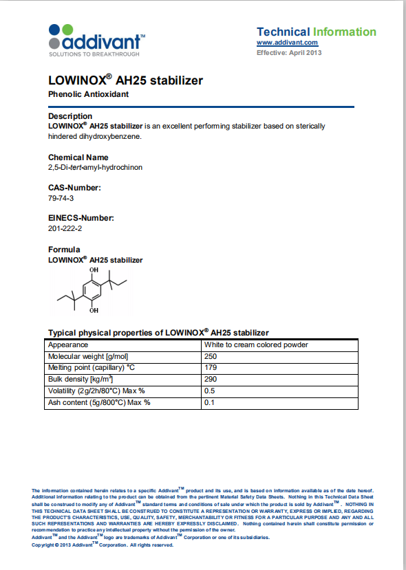 亚帝凡特(科聚亚)Addivant 抗氧剂ah25 产品资料下载列表:
