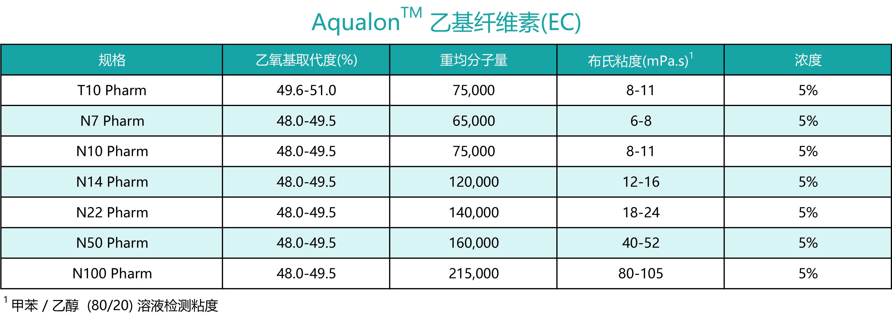 商品名称:亚什兰Aqualon™ 乙基纤维素(EC)N22