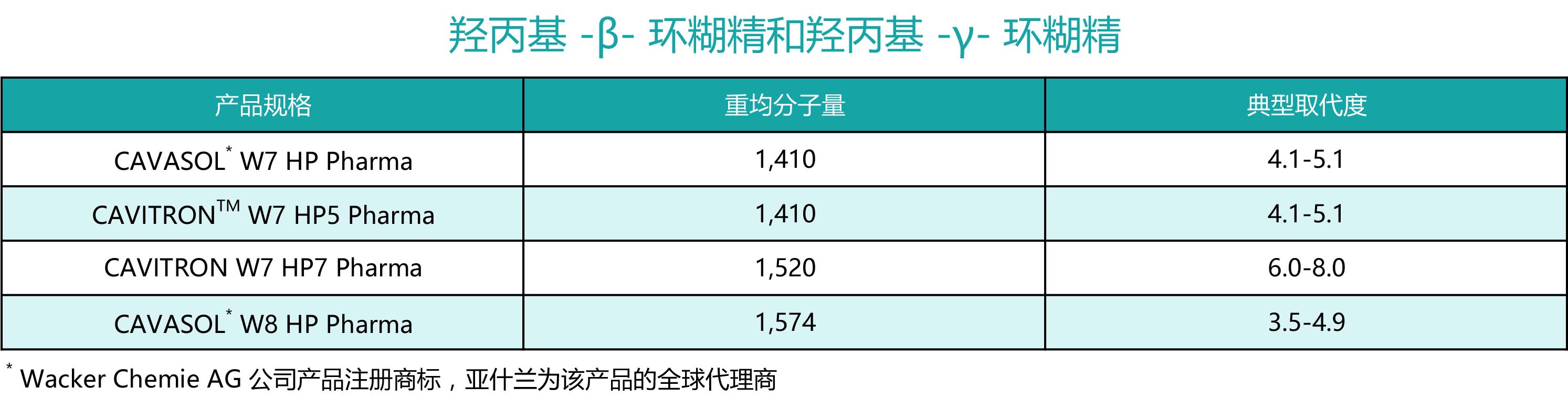 亚什兰羟丙基 -β- 环糊精和羟丙基 -γ- 环糊精W7HP7