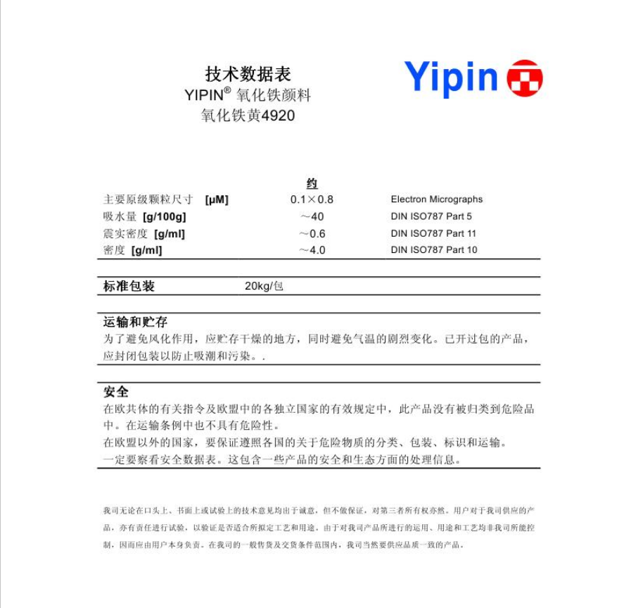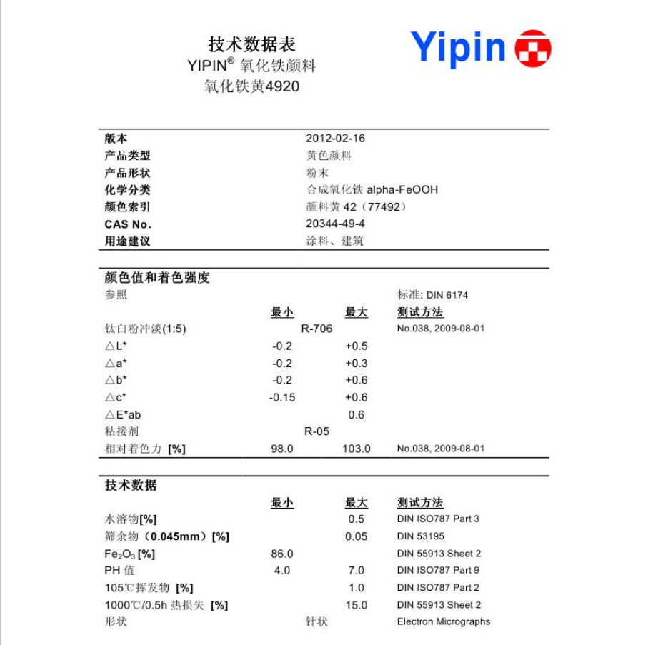 一品颜料4920氧化铁黄 一品颜乐氧化铁黄--4905,4910,4920,4960
