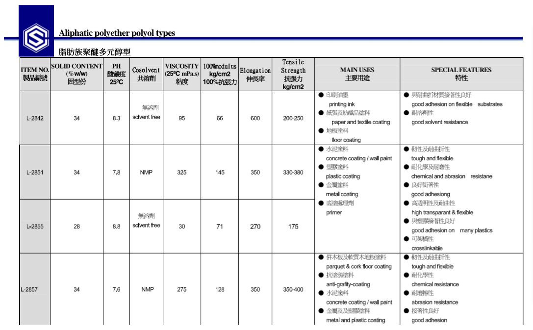 产协水性聚氨酯树脂L-2851 产品资料下载列表: