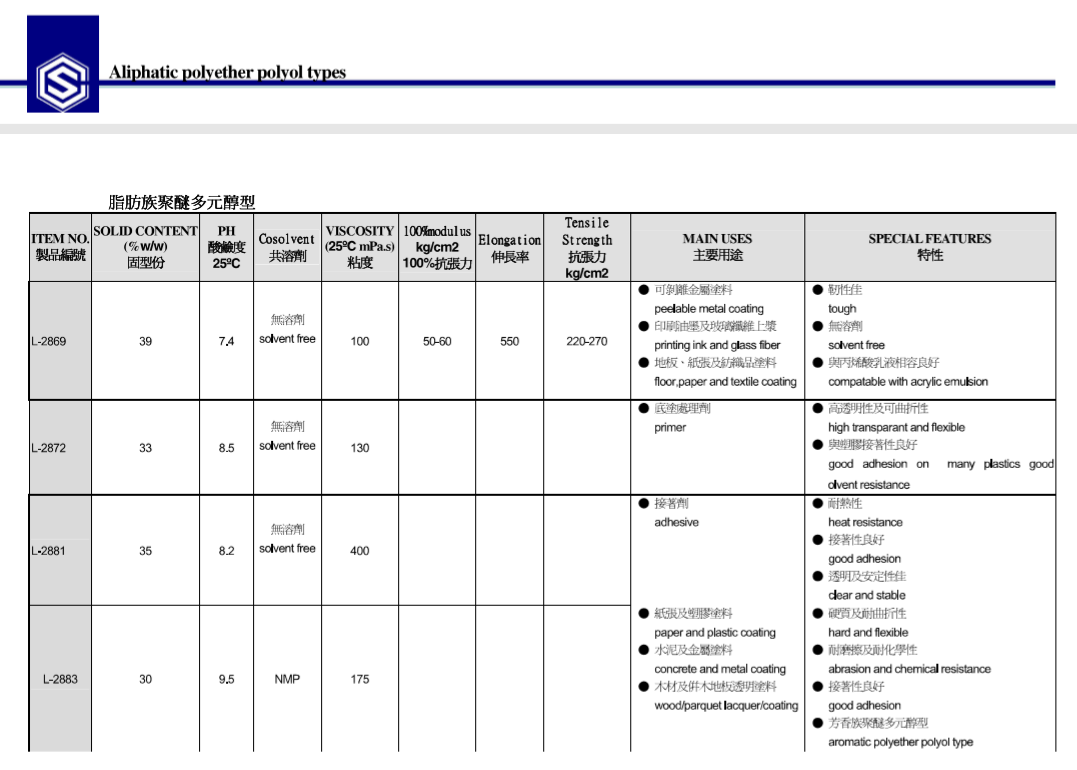 产协水性聚氨酯树脂L-2872 产品资料下载列表: