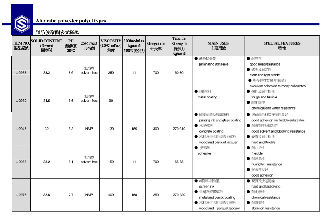 产协水性聚氨酯树脂L-2946 产品资料下载列表: