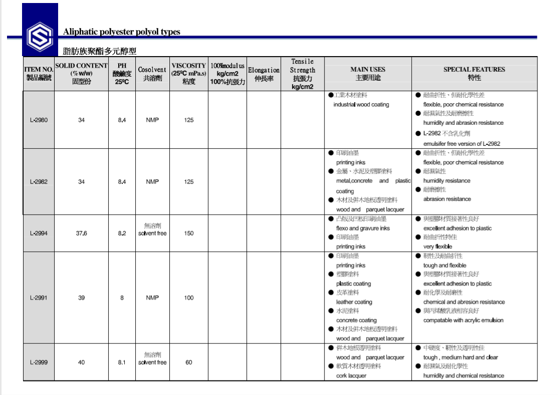 产协水性聚氨酯树脂L-2991 产品资料下载列表: