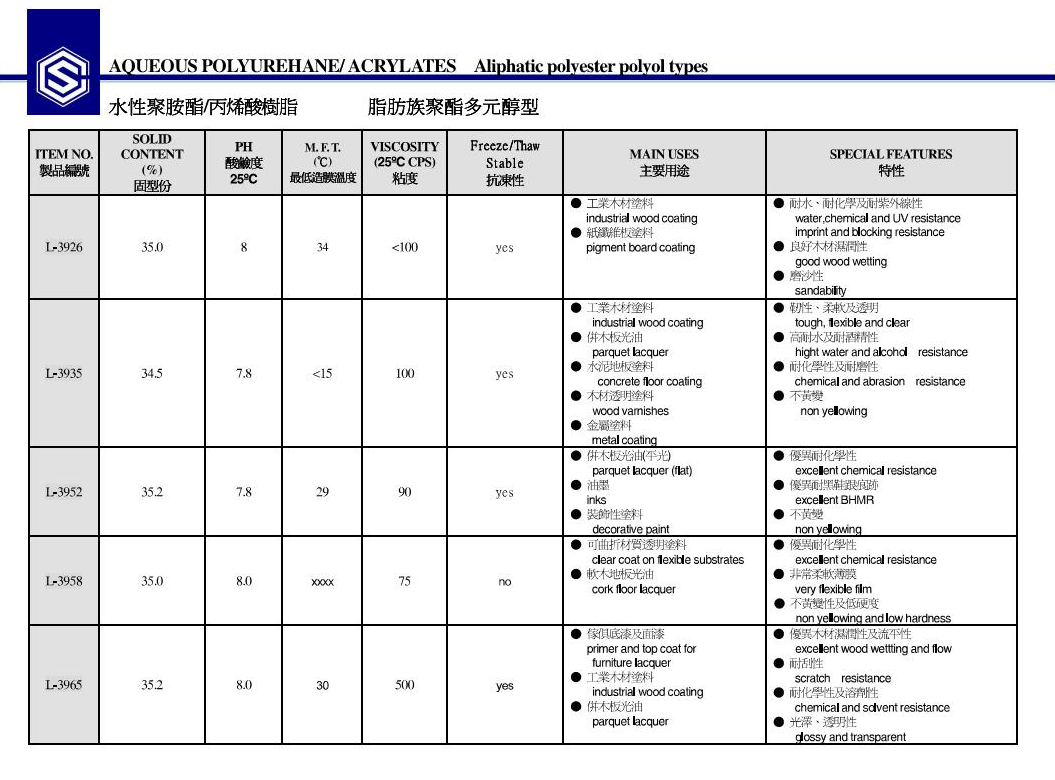 产协水性聚氨酯树脂L-3958 产品资料下载列表: