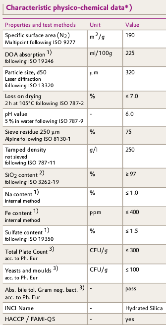 通过对比表面积、粒径、吸油值或纯度(电导率)的仔细调节,实现了产品的不同性能。