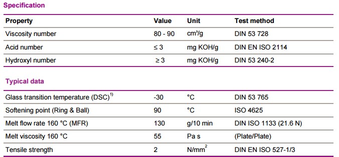 应用特性:德固赛共聚聚酯树脂 DynacollS1408是带端羟基的中分子量线性共聚聚酯。适用于电子包装的层压粘合。