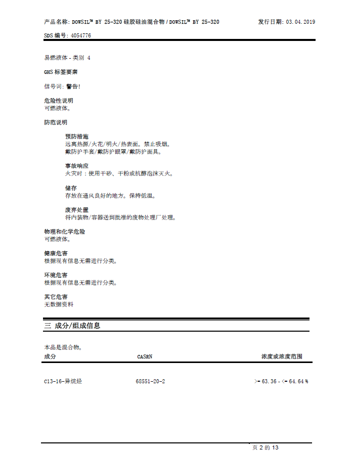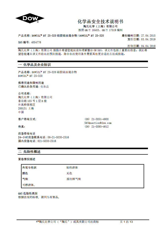 道康宁(DOW) BY 25-320 硅油化妆品成膜助剂 产品资料下载列表: