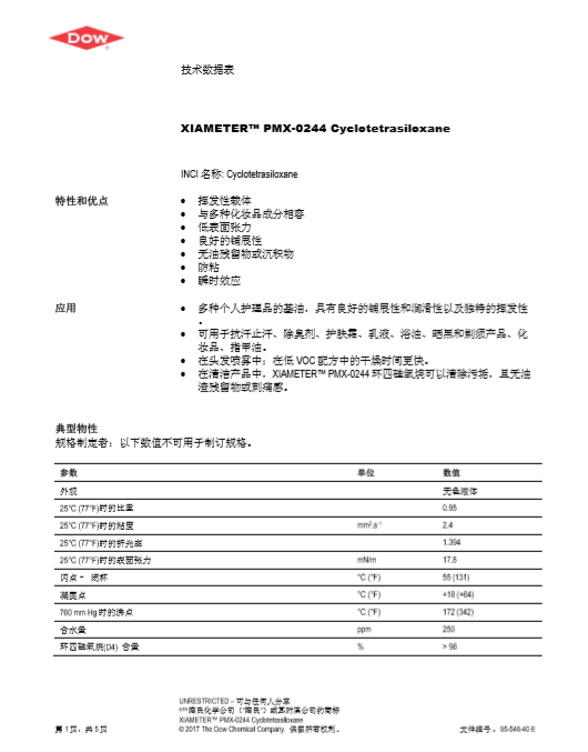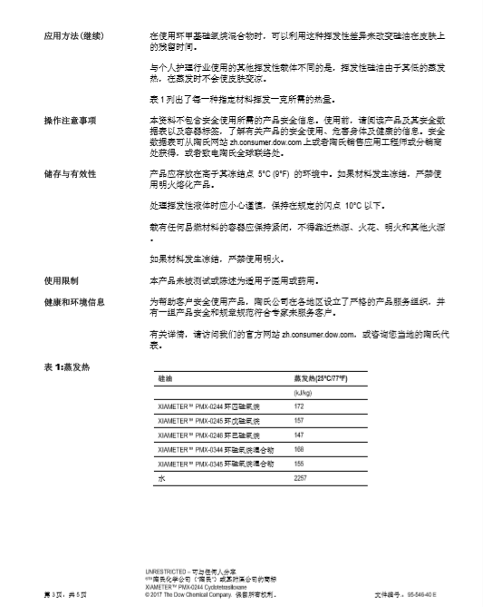 道康宁(DOW) PMX-0244 化妆品硅油乳液 产品资料下载列表: