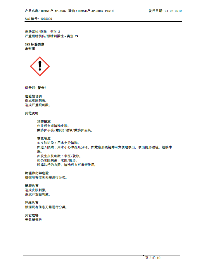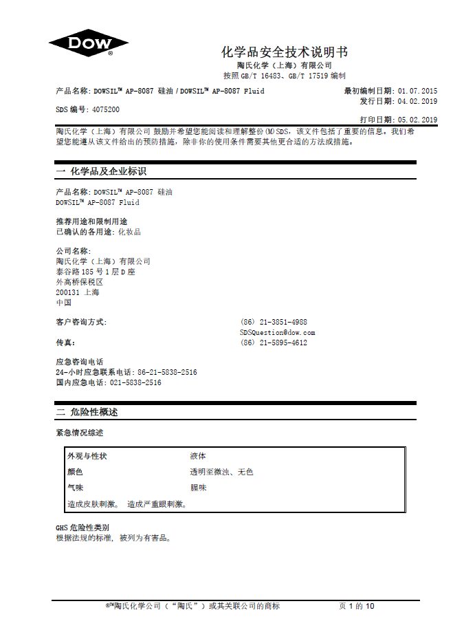 道康宁(DOW)AP-8087 Fluid特种硅油化妆品硅油 产品资料下载列表: