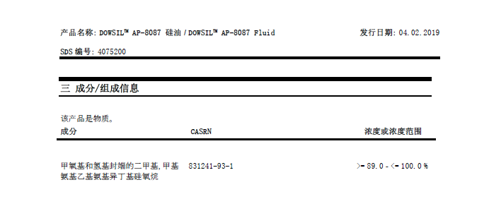 商品名称:道康宁(DOW)AP-8087 Fluid特种硅油化妆品硅油