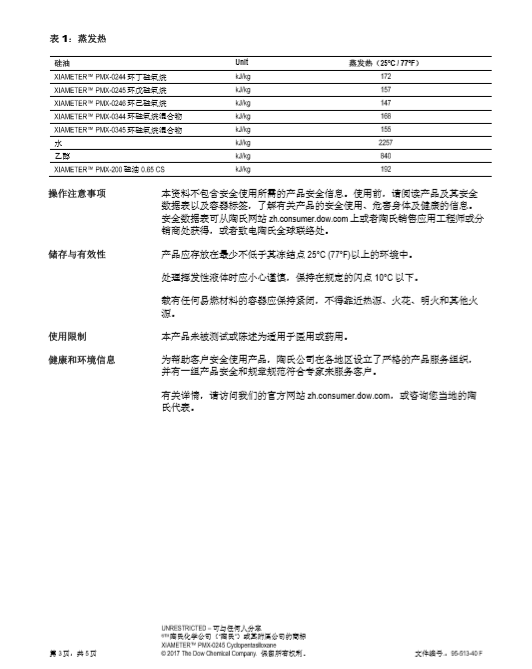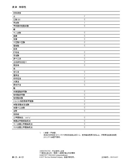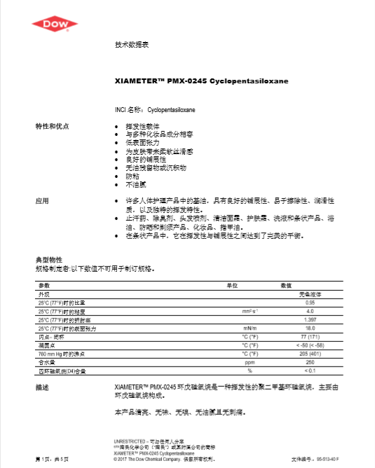 道康宁(DOW)PMX-0245 Cyclopentasiloxane化妆品硅油乳液 产品资料下载列表:
