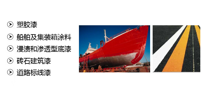 气溶胶漆、船舶及集装箱涂料、浸渍和渗透型底漆、砖石建筑漆和混凝土涂料、印刷油墨、金属保护涂料、道路标线漆 |