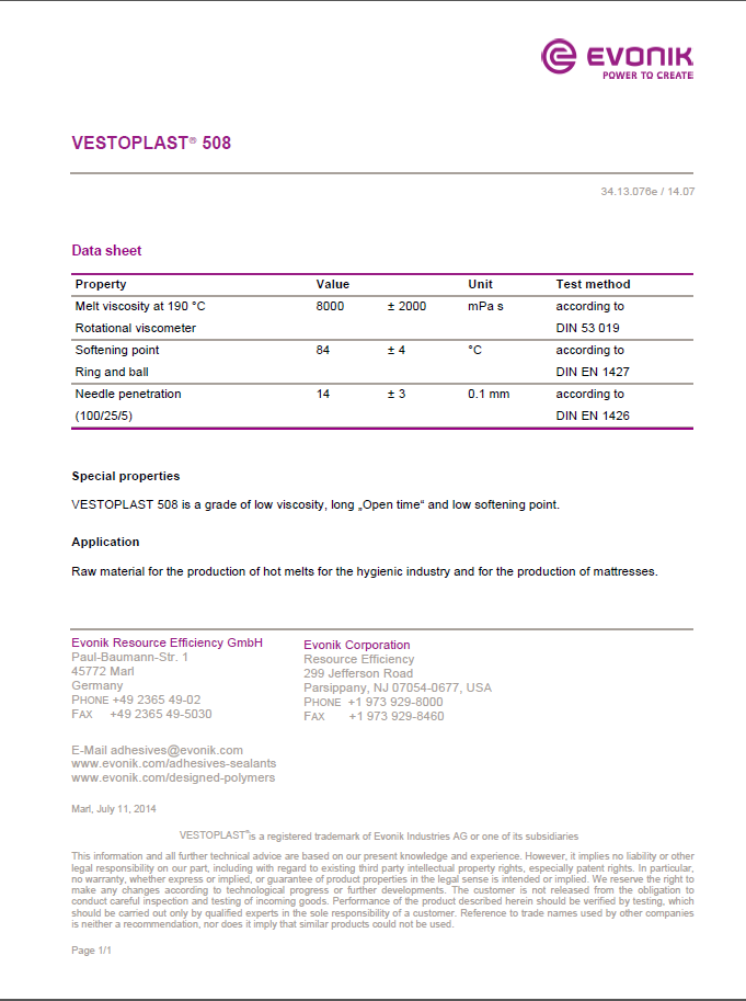 产品型号VESTOPLAST508