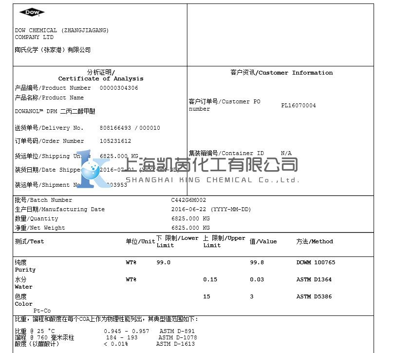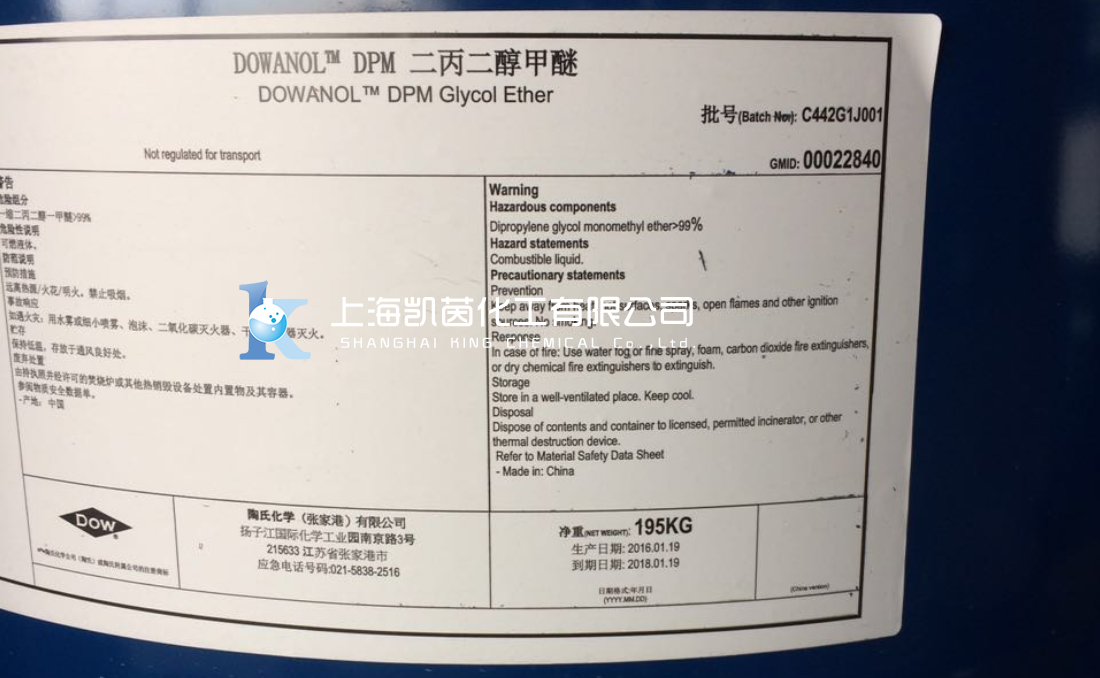 产品特性:无色透明液体,有微弱醚味。低毒性;低粘度;低表面张力;适度的蒸发速率;良好的溶解、偶联能力。
