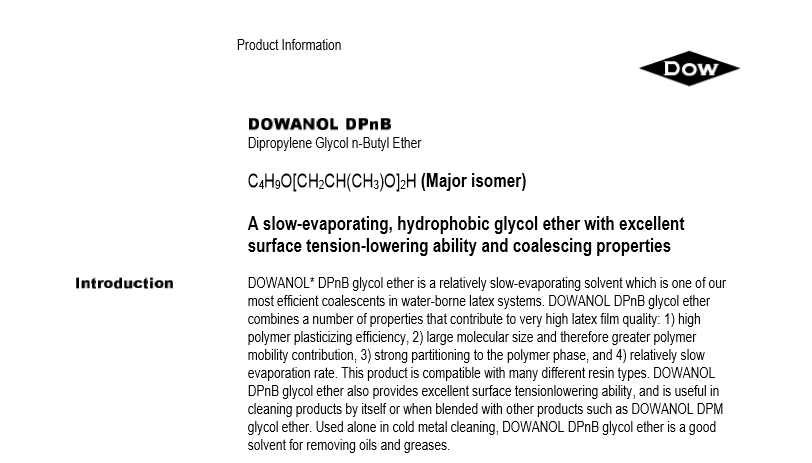 产品特性:DPNB具有轻微的气味、低水溶性和良好的结合力,并对涂料树脂具有良好的溶解性。对各种树脂显示出良好的结合性能。此外它还具备 好的成膜特性。