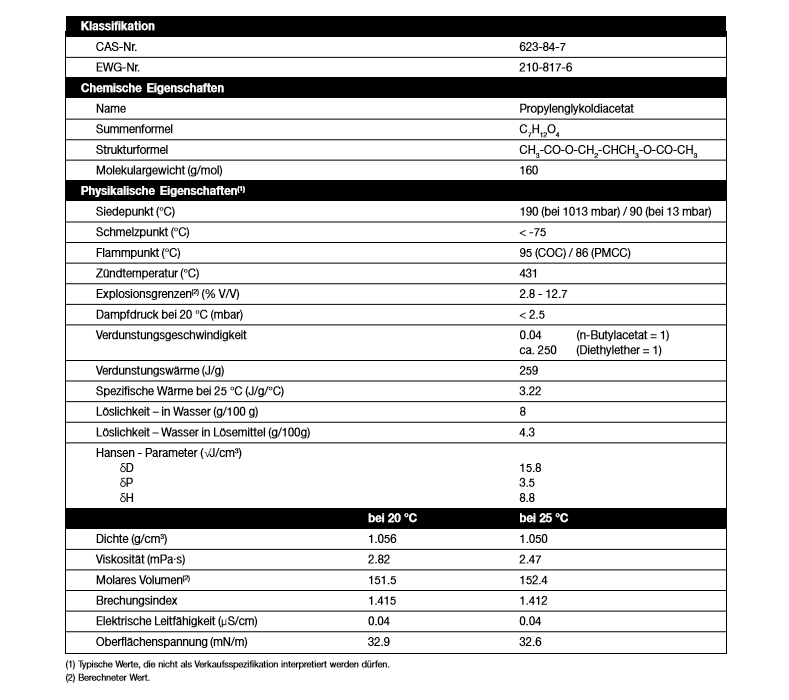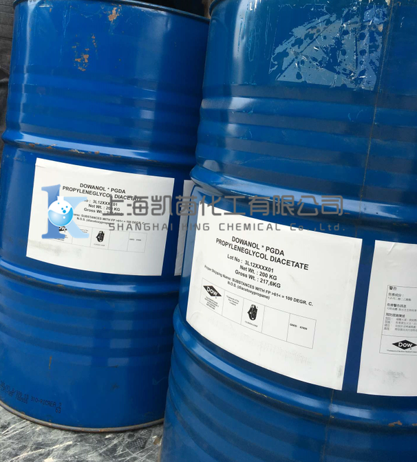 产品特性:PGDA易溶于醇、醚和其他有机溶剂,具有酯的一般化学性质,在苛性碱和无机酸存在下容易水解成醇和乙酸。