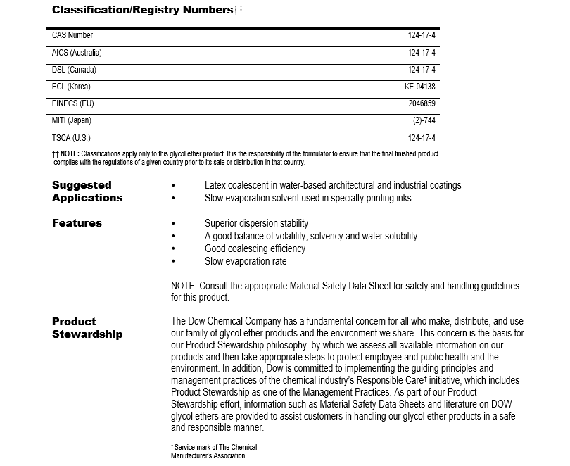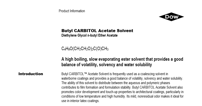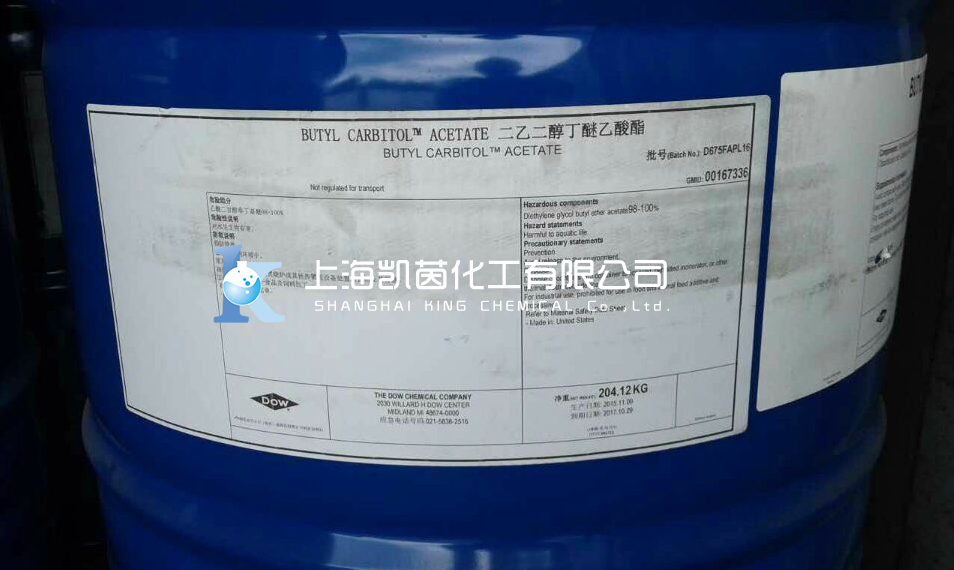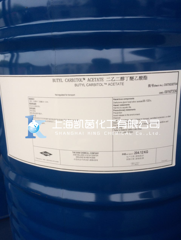 应用:二乙二醇丁醚醋酸酯有着十分高的沸点,主要用于高温烤瓷以及印刷油墨的高沸点溶剂,也用作乳胶漆的助聚结剂。由于该溶剂的挥发很慢,在水中溶解度低,所以可作为丝网印刷油墨的溶剂,以及聚苯乙烯涂料印花釉的溶剂。也可作为共沸剂用于醇与酮的分离。