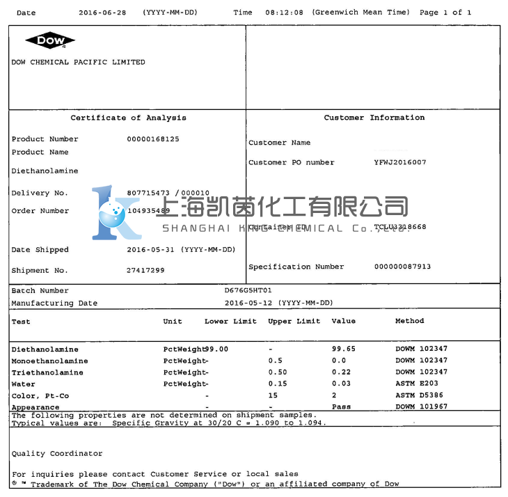型号: 二乙醇胺DEA
