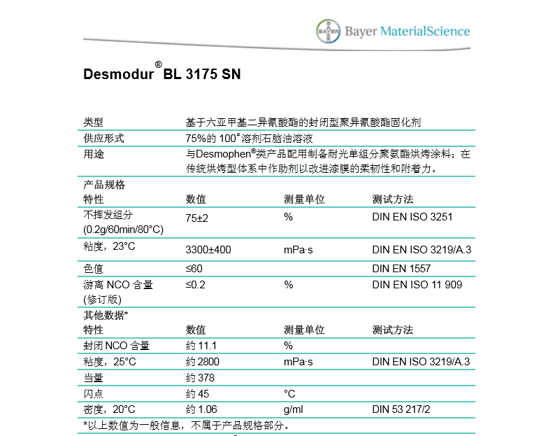 产品型号DesmodurBL3175SN