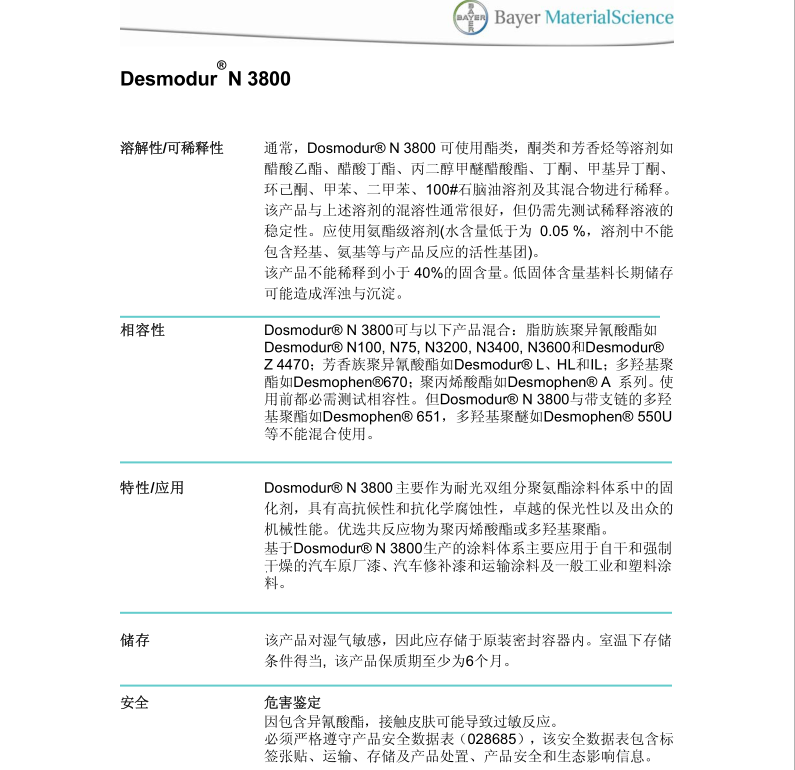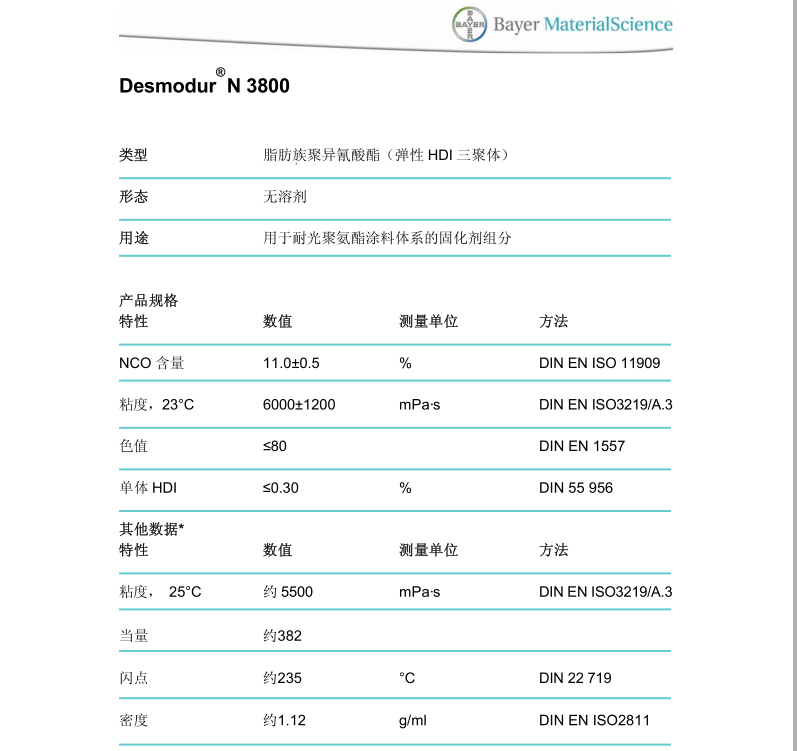 产品型号DesmodurN3800