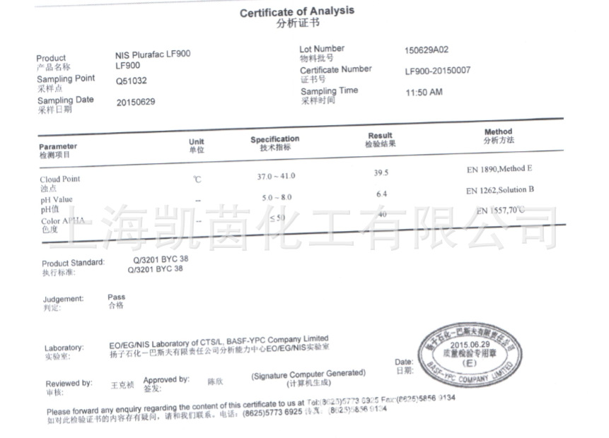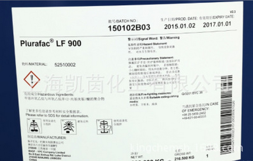 凯茵化工保证现在你看到的德国巴斯夫表面活性剂系列产品100%为原装正品,如果您现在打进电话400-678-7252订购德国巴斯夫表面活性剂LF900,马上就省掉您的邮费!