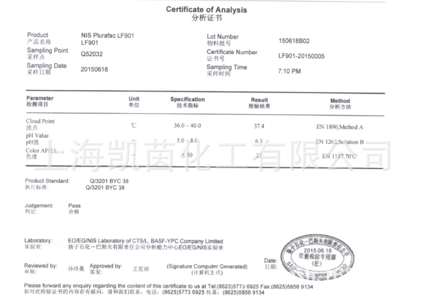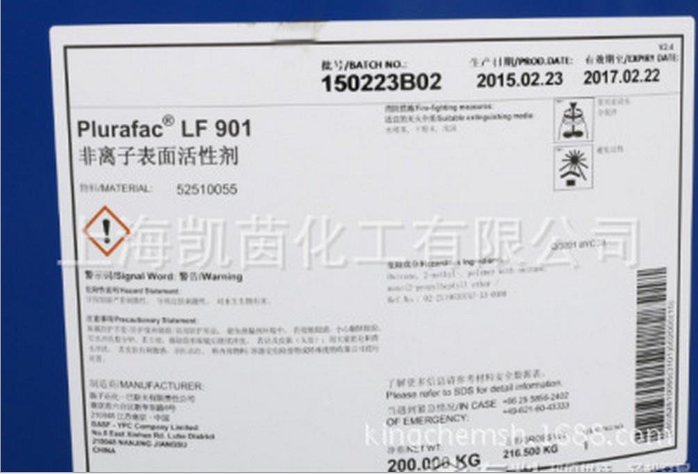 凯茵化工保证现在你看到的德国巴斯夫表面活性剂系列产品100%为原装正品,如果您现在打进电话400-678-7252订购德国巴斯夫表面活性剂LF901,马上就省掉您的邮费!