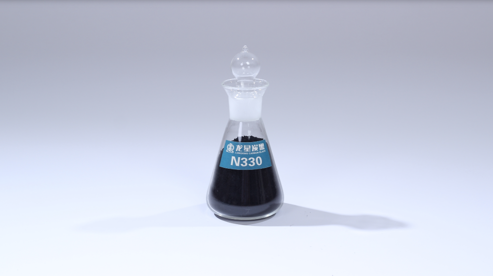 本品在胎面胶料中的补强性能,耐磨性能及抗裂口增长性能近于 N220 炭黑,压出性能也较好,特别适用于丁苯橡胶/顺丁橡胶并用体系。但用本品生产胎面胶料,其滚动阻力在 N300 系列炭黑中是最高的,这一点在胶料配方设计时应予重视。