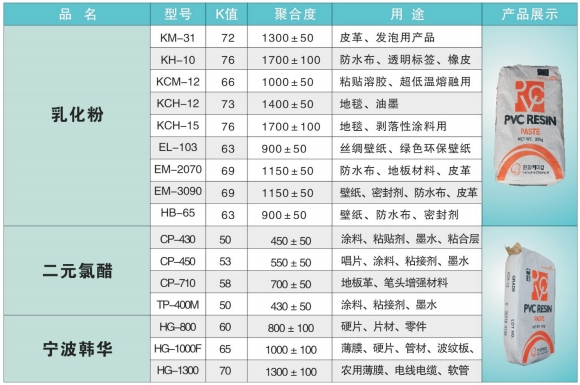 应用: 1、PVC增塑溶胶、汽车PVC底涂、织物涂层、地板材料、壁纸、搪塑成型、浸塑加工、玩具、人造革、瓶盖垫等
