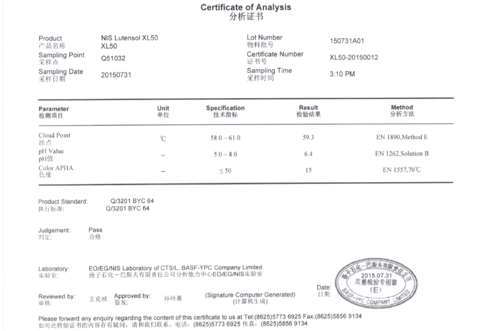 产品型号巴斯夫非离子表面活性剂Letensol XL-50