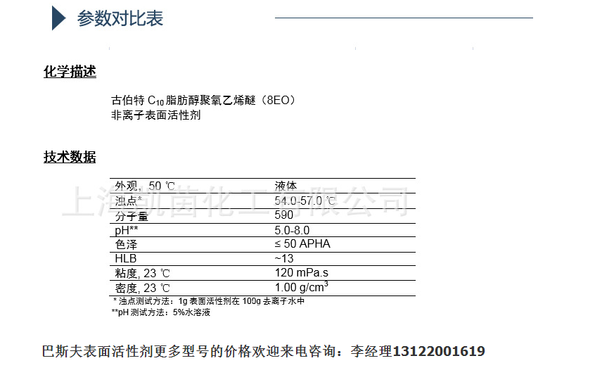 产品型号巴斯夫非离子表面活性剂Letensol XL-80