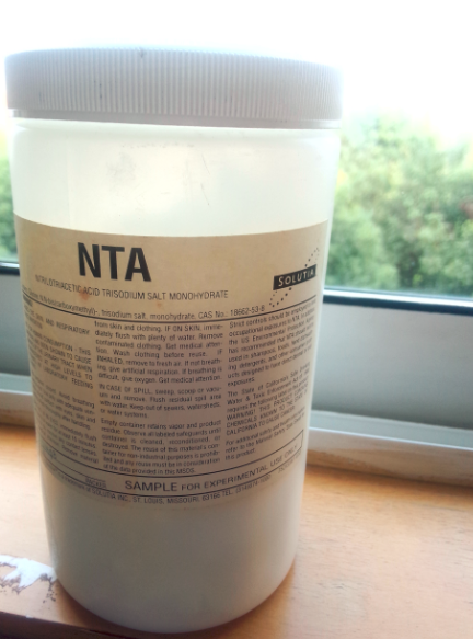 通过对金属离子的螯合而形成可溶性的络合物,NTA 用以软化水质。此外,NTA 还可以溶解诸如水垢等的金属离子沉淀物。